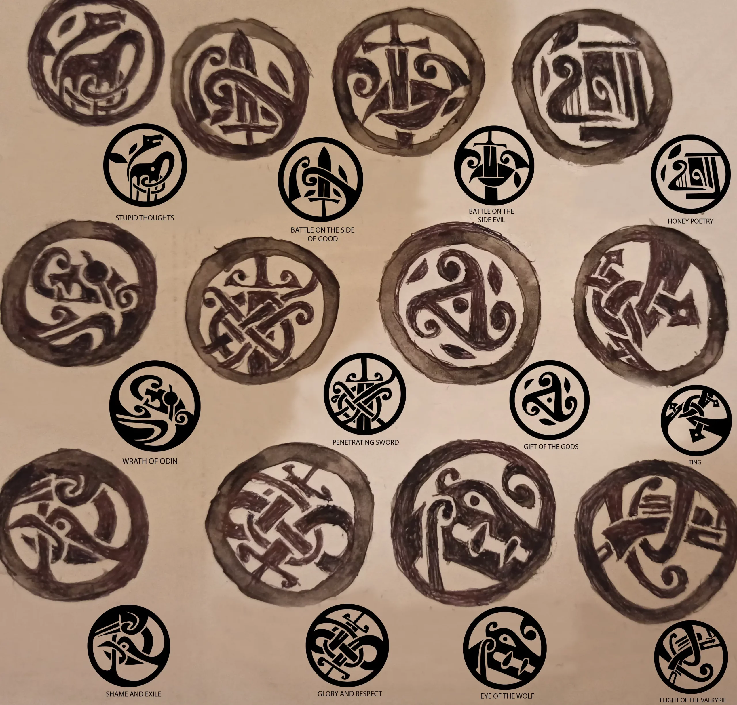While working on the script, I found that a lot of the events are repeating! This prompted me to the idea of creating signs-symbols for such events. I ALSO REMEMBERED my experience of learning CALLIGRAPHY. Many CALLIGRAPHY textbooks mention that the ancient types of human writing consisted of simple drawings, then among the Eastern peoples the drawings turned into hieroglyphs. Western civilization took a different path: each sound began to have its own separate sign (letter). This is a very exciting journey through time! It is also a very interesting creative task to depict the whole story in the form of a simple and understandable sign …. I was also very inspired by the ornaments and plastic art of the ancient Celts. After that comb my hands and I started sketching on paper in my setbook. I made the final version as vector images on a laptop. You see in the picture the first sketch and the final sign for each topic. It is interesting to know your thoughts on this topic… Then the idea came up to make a short animation for each sign. The creative process got its own energy and got off the ground, and this is the most important thing for me!…